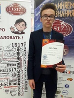 Мещенко Егор, учащийся 9 «Б» класса, - победитель Конкурса исследовательских работ «Объединяемся знаниями», награждён Дипломом «За высокие достижения в программировании».