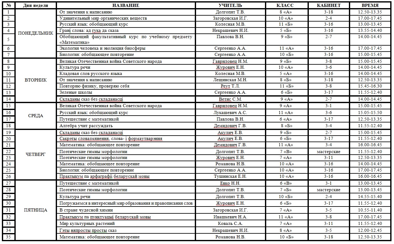 Расписание факультативных занятий 5-11 классы на 2 полугодие 2025/2026 учебный год